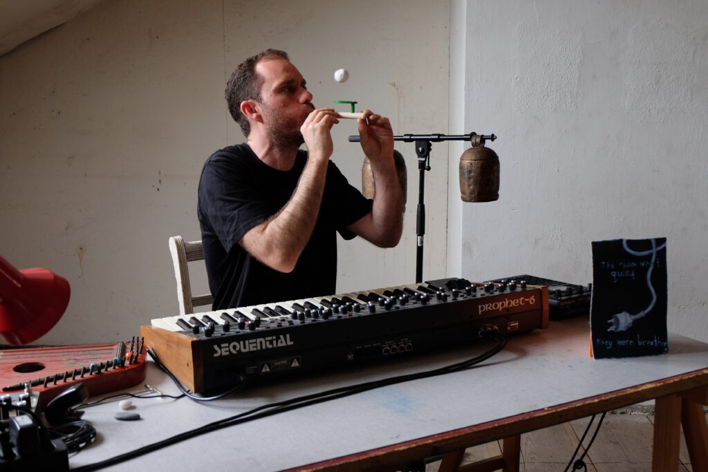 Experimenting with long-form improvisation, maqām and electroacoustic composition, Kurbeh’s projects often depart from questions like “what happens if___?”. Filling in the blank, he makes sounds and records them (sometimes) – as can be heard on his albums Likulli Fadāin Eqāeh (Research Records, 2025) and Aphorisms with Raman Khalaf Ensemble (!K7 imprint Between Buttons, 2017).