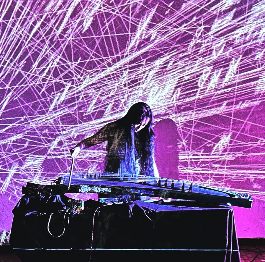 Yellow Wasabi, evolutionary biologist and new media artist in Paris. She combines sciences and arts to investigate the human position in the digital industry and ecological landscape. She uses computer programs and biological modules to innovate Guzheng, traditional Chinese harp; she shapes sound through AI motion capture and interactive projections. The noise of life is transformed into immaterial fossils of cognition that resonate with the audience’s emotional experience, improvising collectively to create an inclusive space.